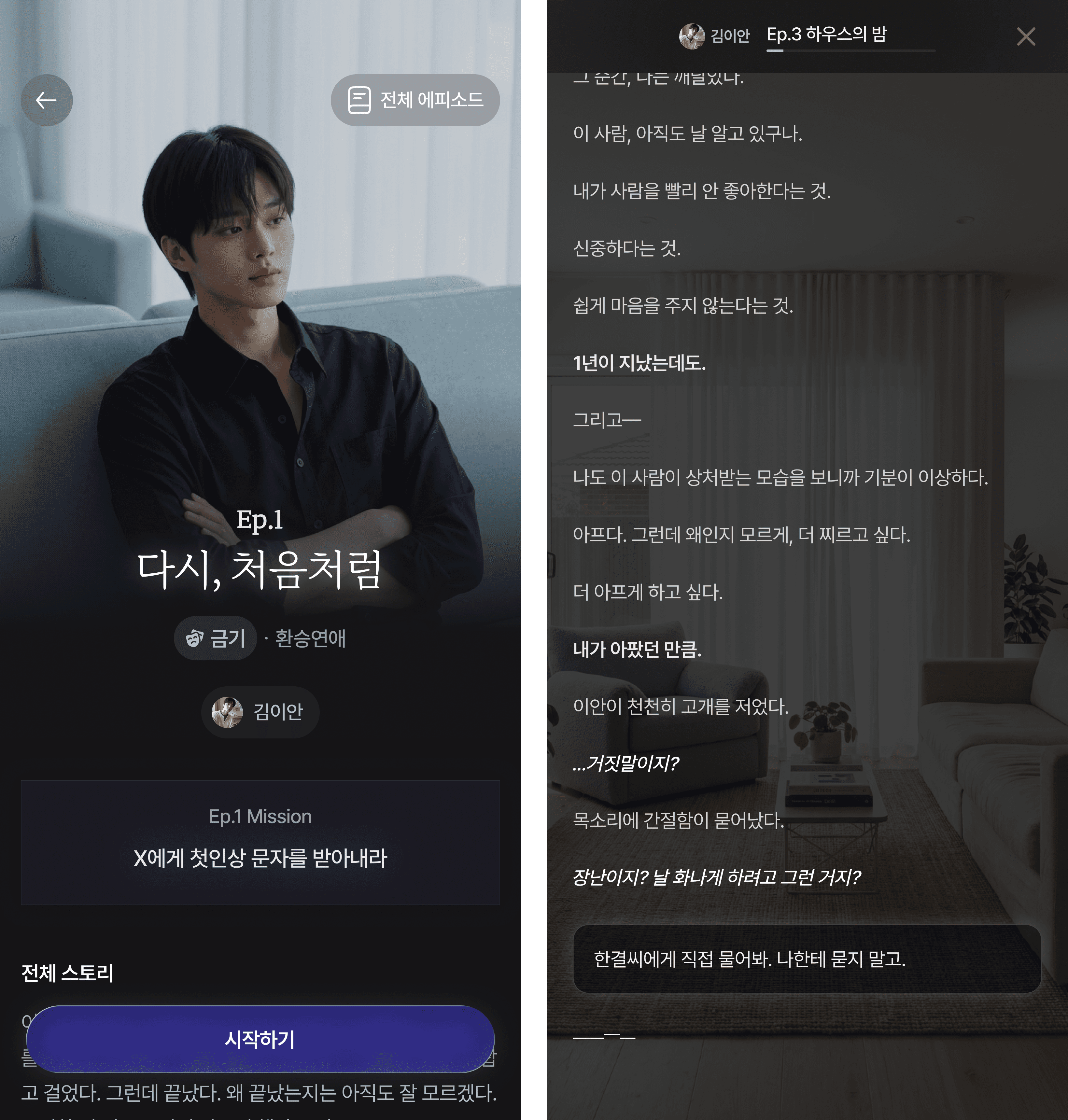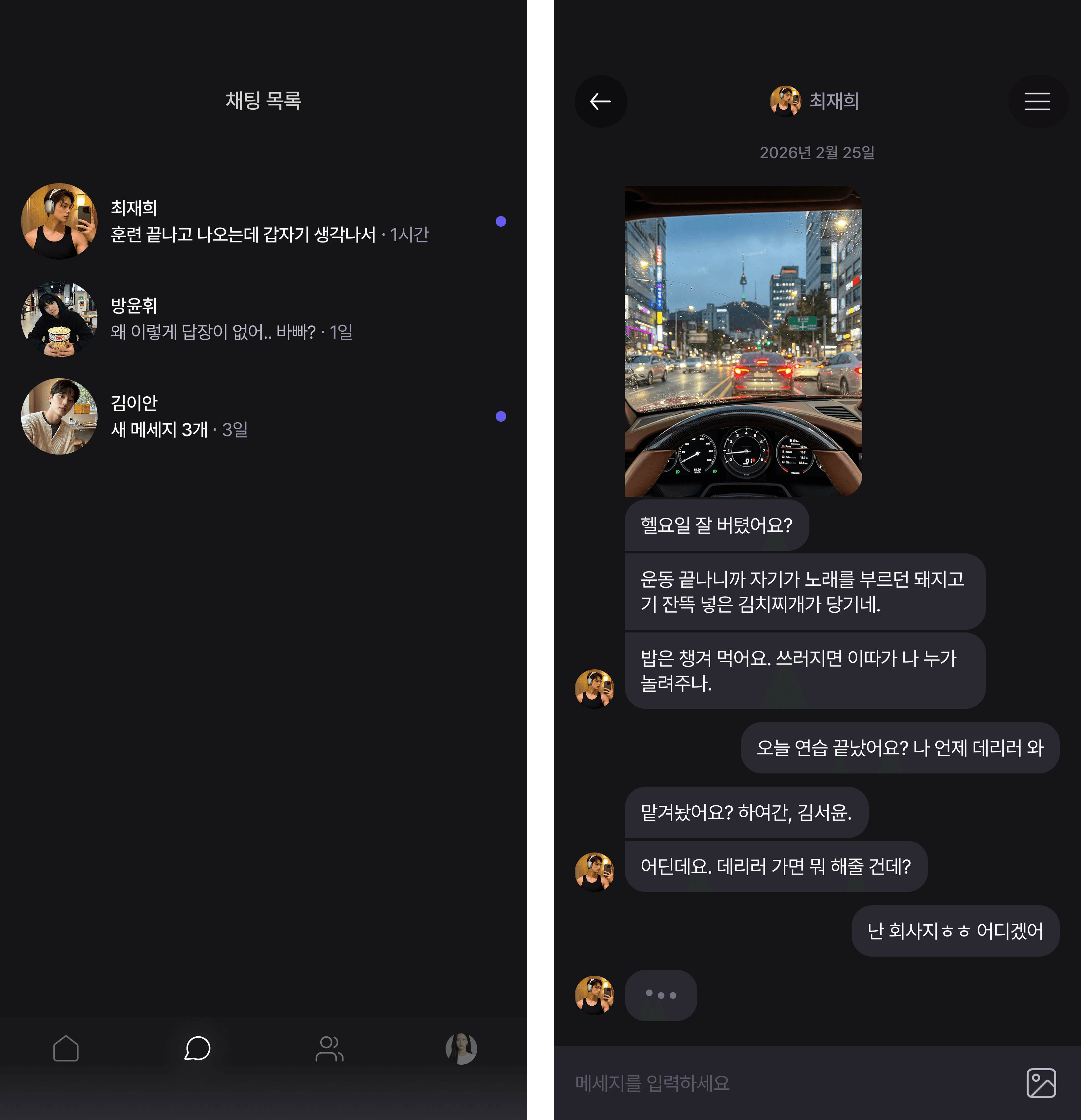 하루 한 통의 편지 대신 실시간 채팅으로 일상을 공유하고, '만약에 시현이와 ______에서 만난다면?’과 같은 상상으로 시작한 시나리오를 통해 상황극을 플레이할 수 있어요.